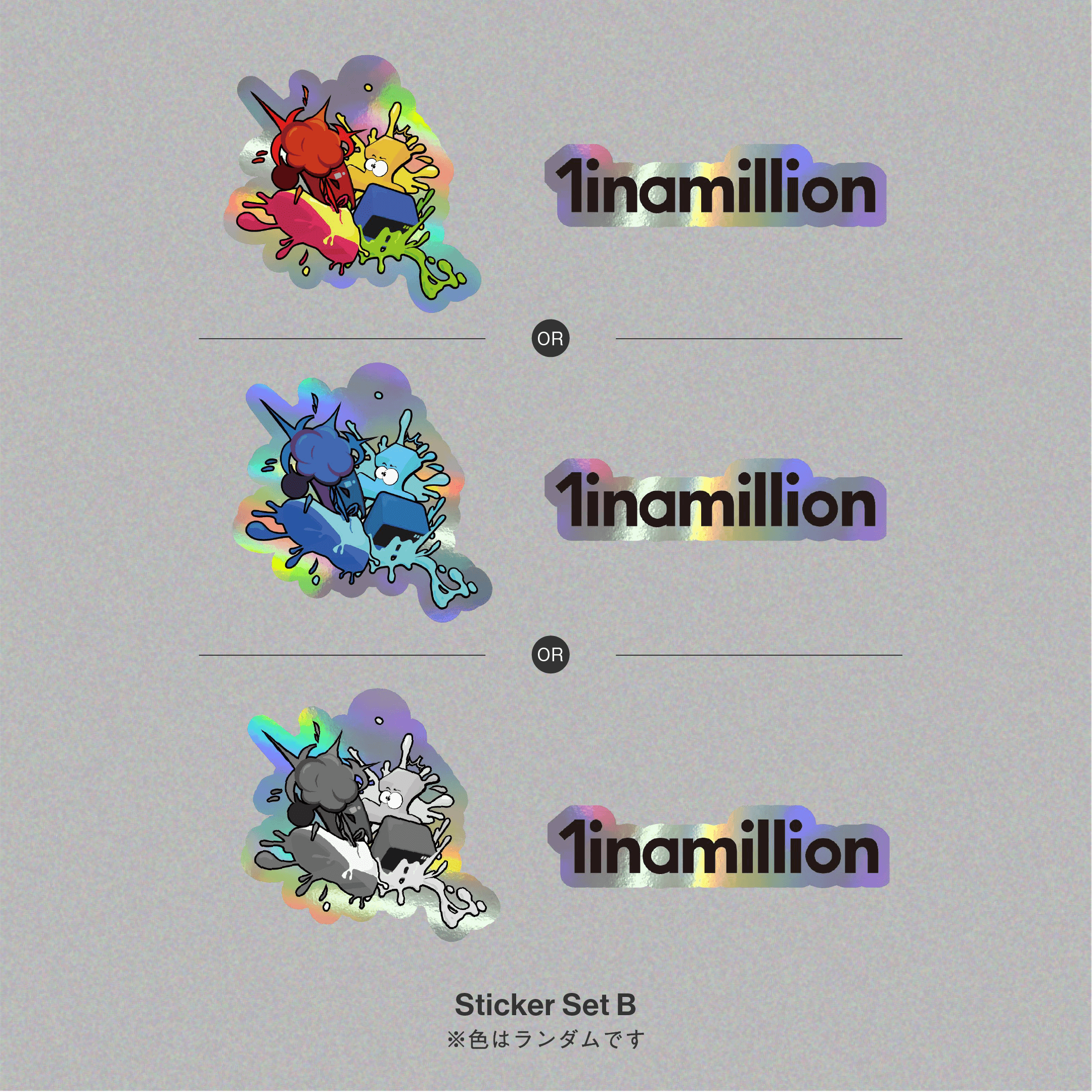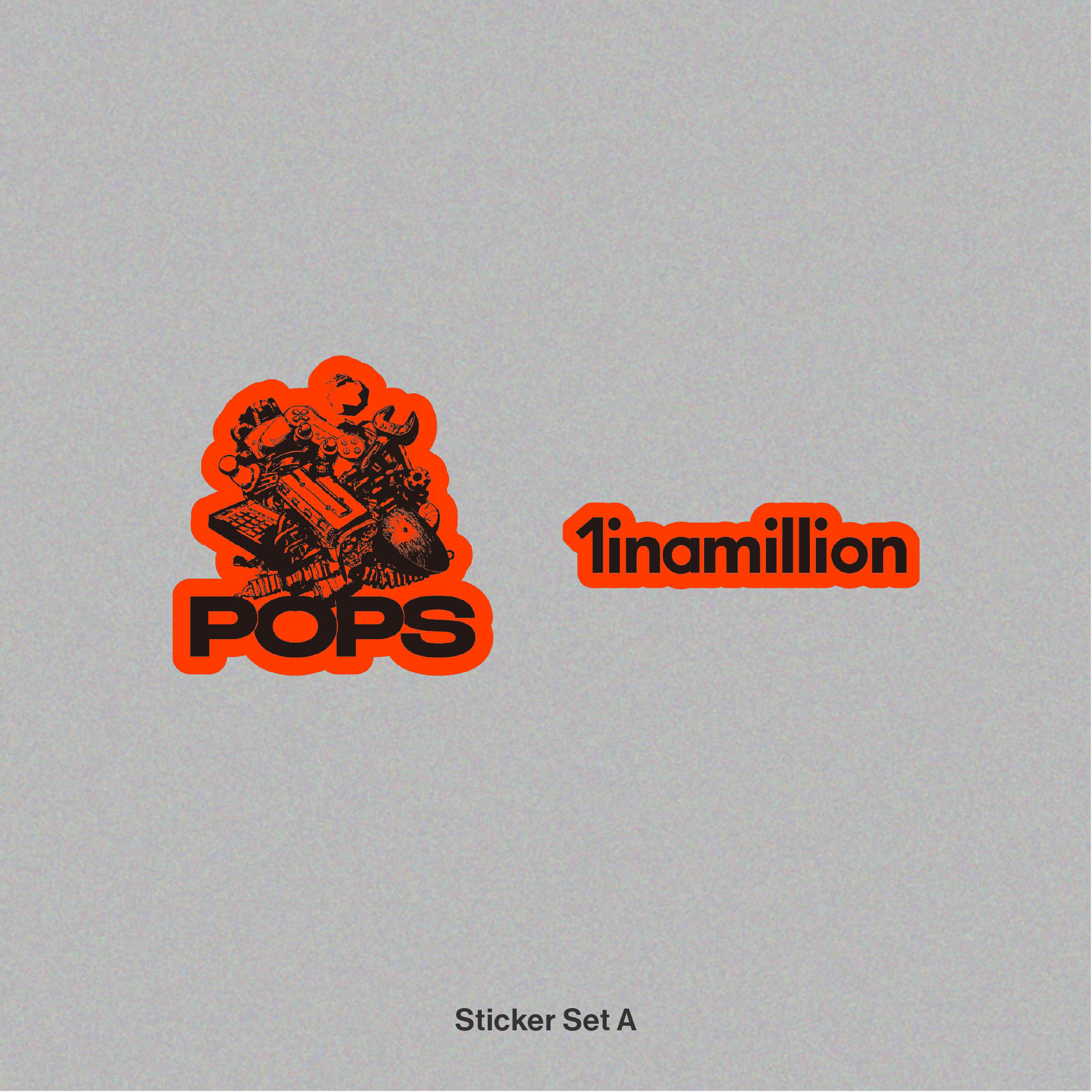 ・Sticker Set A POPSのアートワークグラフィックと、1inamillionロゴがセットになったステッカーです。 ・Sticker Set B 過去アートワークグラフィックと1inamillionロゴがセットになったステッカーです。 ※こちらのグラフィックは3色ございますがランダムとなります。
